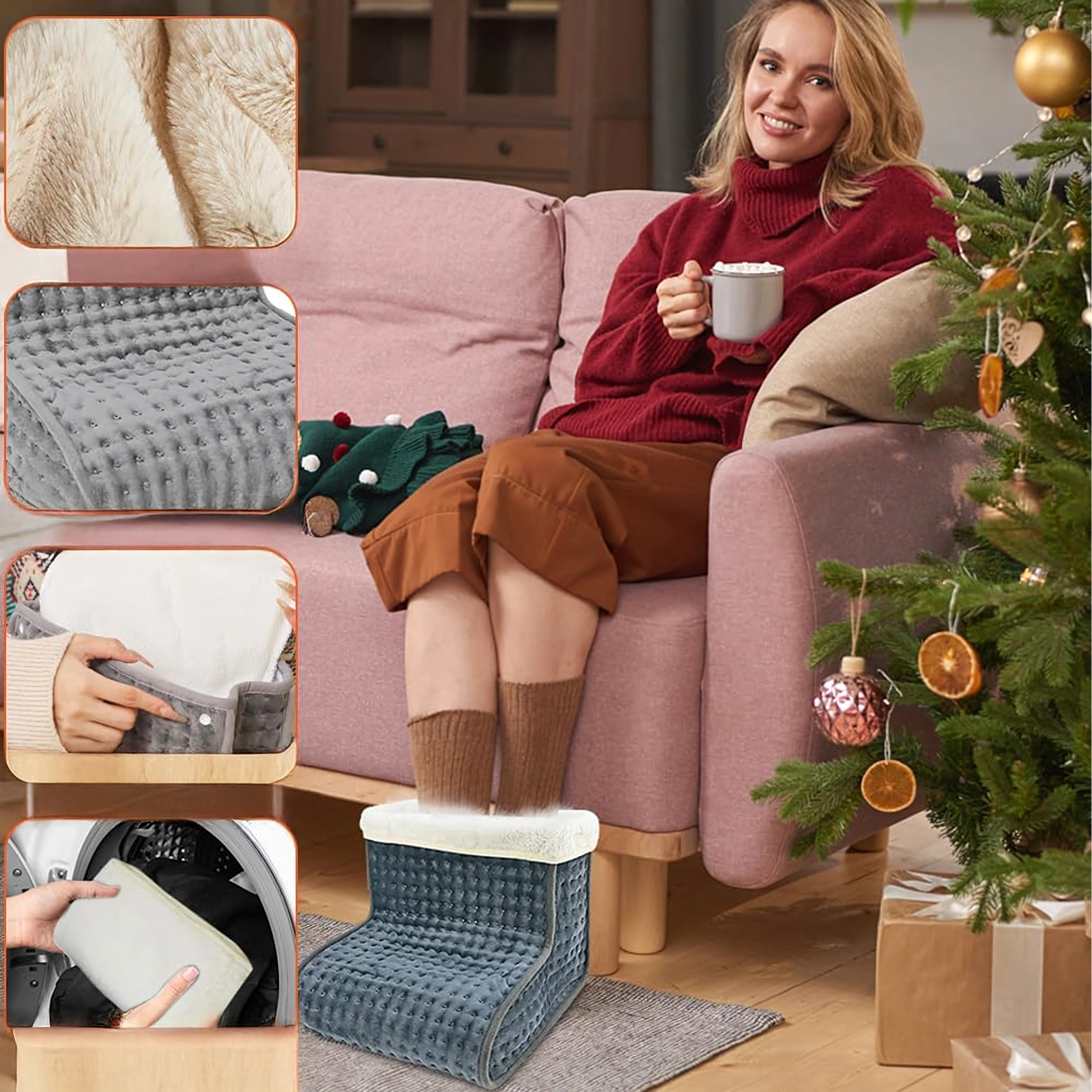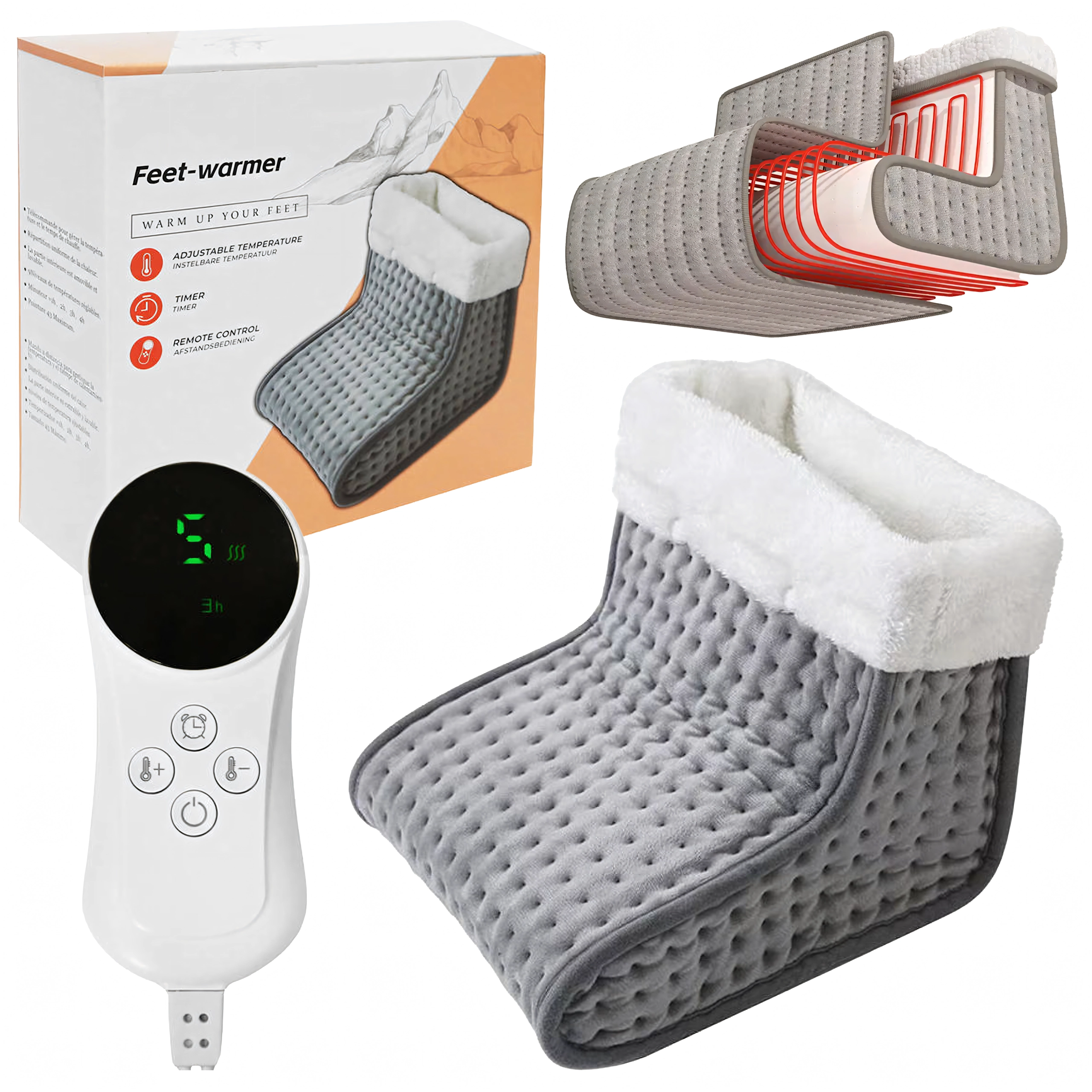 Elektrický ohrievač nôh je navrhnutý pre maximálne pohodlie počas oddychu pri televízii, pri pracovnom stole aj na gauči. Mäkký plyšový vnútrajšok s príjemnou podšívkou rovnomerne rozvádza teplo a pomáha rýchlo prehriať studené chodidlá. Intuitívny ovládač s displejom umožňuje presné nastavenie teploty aj dĺžky ohrevu pre bezpečné a bezstarostné používanie.