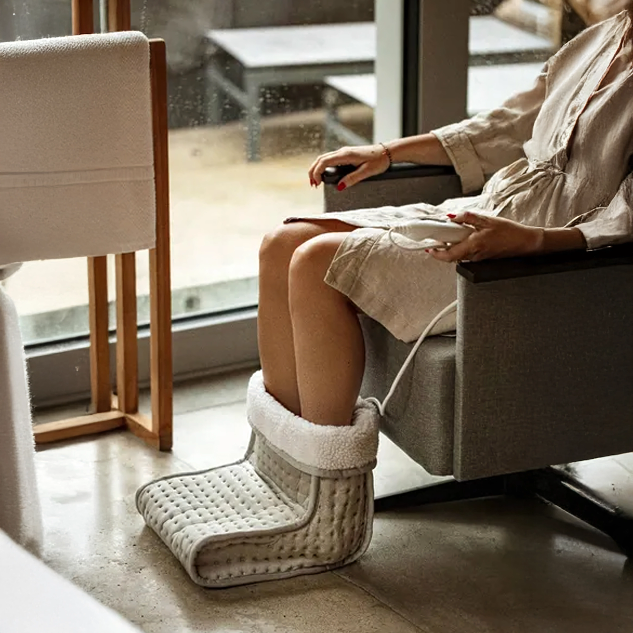 Vďaka 9 stupňom ohrevu si zvolíte presne také teplo, aké potrebujete – od jemného zohriatia až po intenzívne prehriatie po návrate z chladu. Časovač (60–240 min) s automatickým vypnutím zvyšuje bezpečnosť a šetrí energiu. Konštrukcia pre obe chodidlá, mäkké polstrovanie a priedušné materiály zabezpečujú komfort aj pri dlhšom sedení.