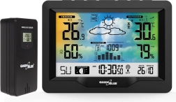 Veľký farebný LCD displej je perfektne čitateľný vo dne aj v noci a prehľadne ukazuje tiež predpovedné ikony, dátum a deň a fázu Mesiaca. Súčasťou balenia je kompaktné bezdrôtové čidlo s dosahom až 60 m v otvorenom priestore.