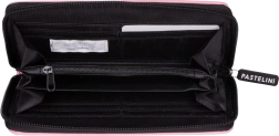 Štýlová ružová peňaženka s obvodovým zipsom a minimalistickým logom PASTELINI bezpečne pojme bankovky aj karty a skvelo padne do ruky.