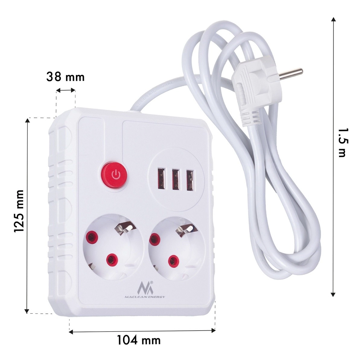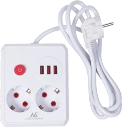 Táto moderná napájacia lišta kombinuje dve zásuvky typu Schuko s tromi USB portami na rýchle a pohodlné nabíjanie telefónu, tabletu či drobnej elektroniky. Vďaka výkonu 2500 W spoľahlivo utiahne bežné domáce aj kancelárske zariadenia, zatiaľ čo kompaktný tvar a čisto biely dizajn zapadnú do každého interiéru.