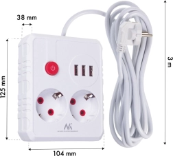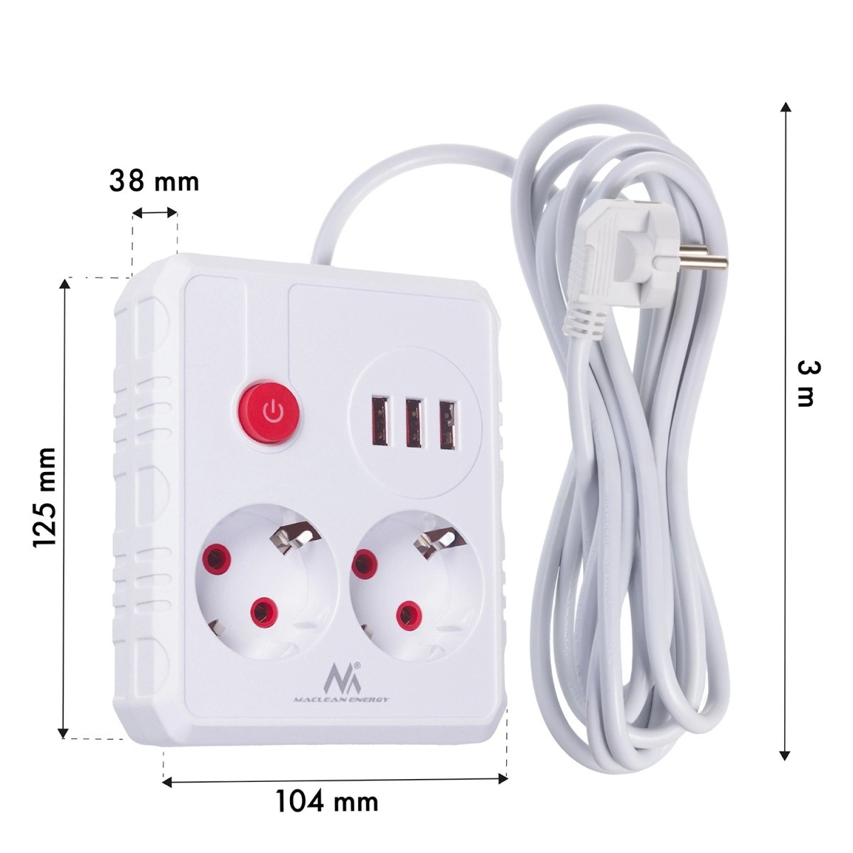 Táto moderná napájacia lišta kombinuje klasické zásuvky s tromi USB portmi, takže jednoducho pripojíte stolnú lampu, notebook či televízor a zároveň dobijete telefón alebo slúchadlá – bez potreby ďalších adaptérov. Vďaka kompaktným rozmerom a čistému bielemu prevedeniu sa hodí do každého interiéru.