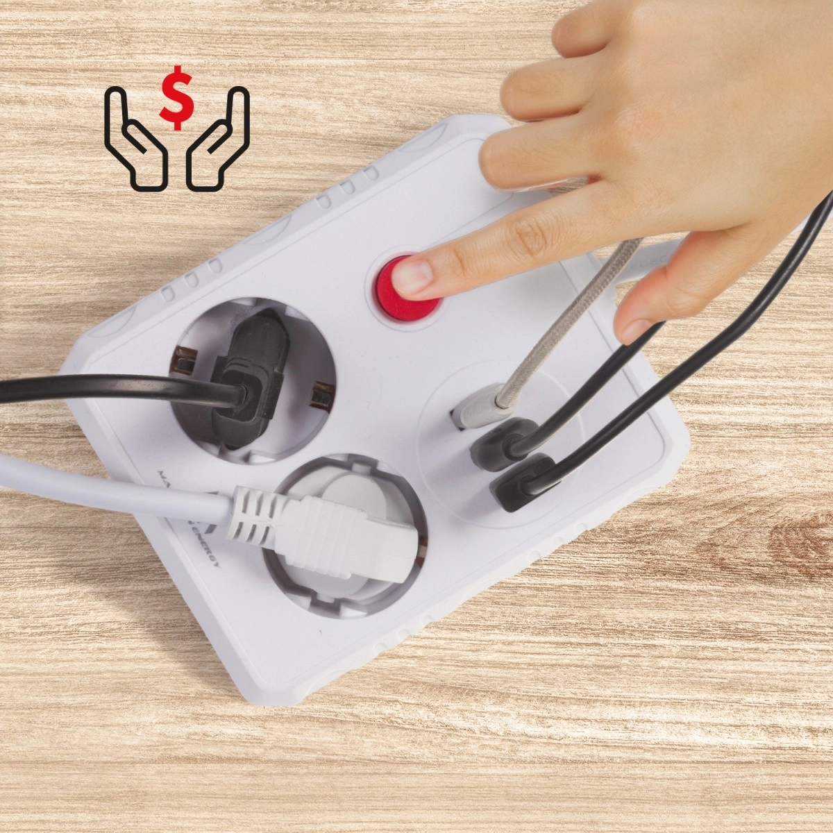 Napájajte spotrebiče a zároveň nabíjajte až tri zariadenia cez USB bez ďalších adaptérov. Ideálne pre pracovný stôl, TV kútik aj nočný stolík.