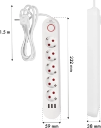 Táto viacúčelová napájacia lišta kombinuje klasické zásuvky a USB nabíjanie v jednom zariadení. Vďaka 5 sieťovým zásuvkám a 3 USB portom ľahko pripojíte počítač, monitor, TV, tlačiareň či nabíjačky telefónov a tabletov bez potreby ďalších adaptérov. Lišta je ideálna na pracovný stôl, do obývacej izby aj domácej kancelárie.