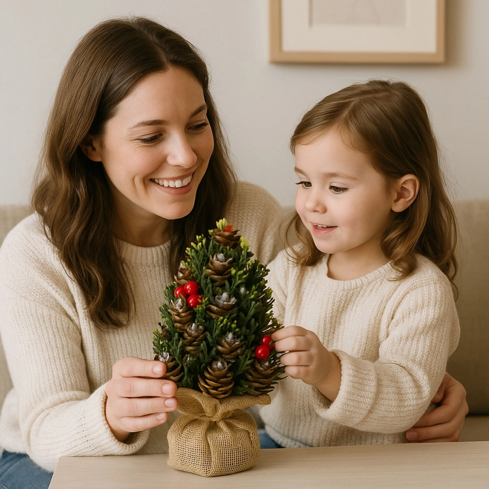 Spríjemnite si adventný čas štýlovou dekoráciou: mini vianočný stromček s realistickou zeleňou, prírodnými šiškami a červenými bobuľkami. Vďaka kompaktným rozmerom, stabilnému zaťaženiu základne a rustikálnemu jutovému obalu sa hodí na stôl, policu aj recepciu a okamžite navodí sviatočnú atmosféru.