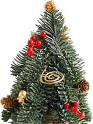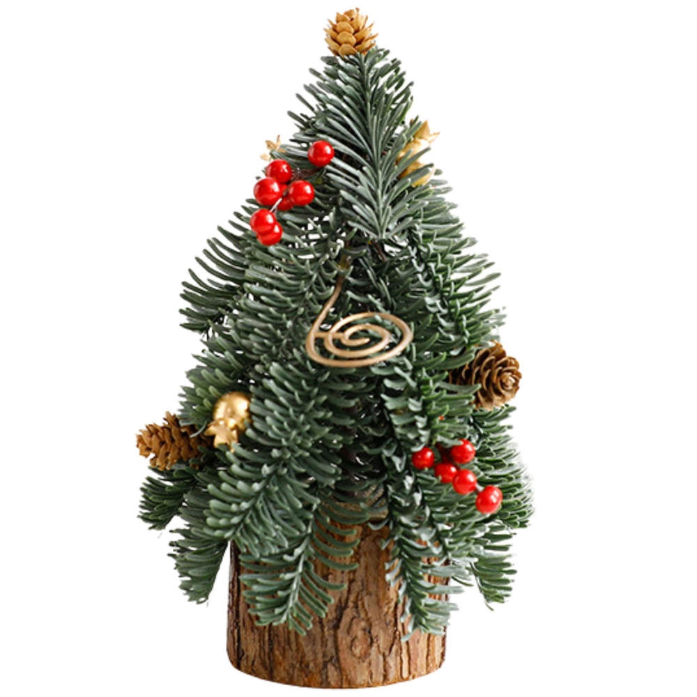 Stromček stojí na prírodnej drevenej základni, takže je stabilný a ihneď pripravený na vystavenie. Realistické vetvičky s červenými bobuľami a šiškami vytvárajú útulný, tradičný vzhľad, ktorý podčiarkne zimný a sviatočný štýl interiéru.