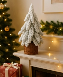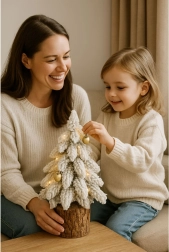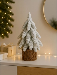 Vneste do interiéru zimné kúzlo s týmto kompaktným stromčekom s výškou 20 cm. Jeho mäkké, nadýchané vetvičky so snehovým efektom a prírodná drevená základňa vytvárajú útulnú sviatočnú atmosféru v rustikálnom štýle. Ideálny na stôl, policu, komodu či pracovný stôl a pre vianočné aranžmány doma aj v kancelárii.