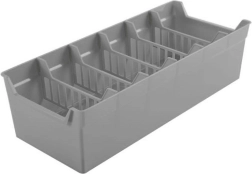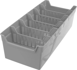 Kvalitný sivý plast je pevný, ale ľahký. Otvorená konštrukcia prepážok zabezpečuje prehľadnosť a dobré prúdenie vzduchu.