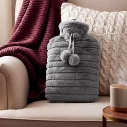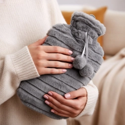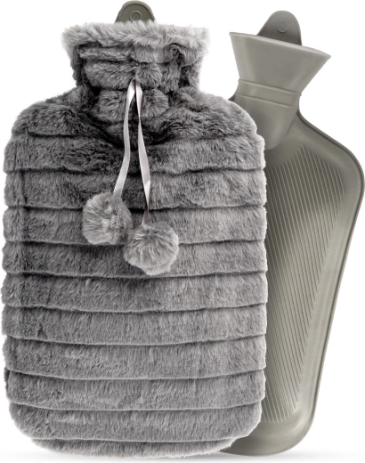 Užite si príjemné teplo a upokojujúci komfort s termoforom s objemom 2 l v hebkom, sivom poťahu. Elastická gumová fľaša s textúrovaným povrchom udržiava teplo po dlhší čas, zatiaľ čo mäkký poťah zaisťuje bezpečný kontakt s pokožkou a príjemný dotyk. Vďaka šnúrke s brmbolcami poťah ľahko stiahnete a zložíte.