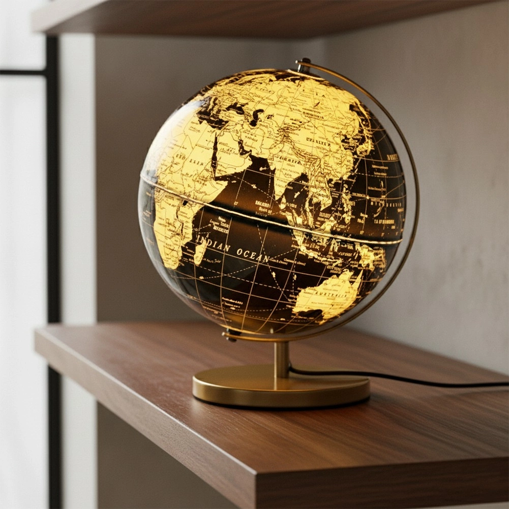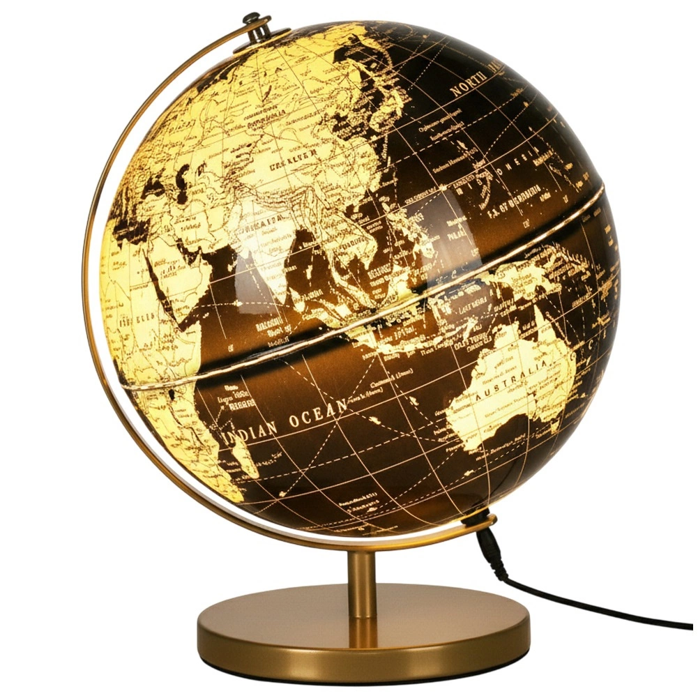 Táto dekoratívna stolná lampa v tvare glóbusu je praktickým aj estetickým doplnkom do obývacej izby, spálne alebo pracovne. Čierno-zlaté prevedenie s detailným spracovaním pôsobí moderne a vďaka teplému LED svetlu navodí útulnú atmosféru bez oslňovania.