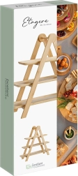 Elegantná trojposchodová bambusová etažérka na servírovanie a prezentáciu dezertov aj slaných dobrôt. Ponúka stabilnú konštrukciu, 3 úrovne pre úsporu miesta na stole a praktické madlo na jednoduché prenášanie. Vhodná na cupcaky, ovocie, syry, chlebíčky aj malé dezerty.