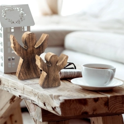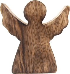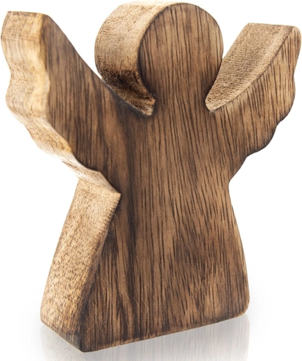 Táto elegantná figúrka anjela je vyrobená z kvalitného mangového dreva v prírodnom odtieni. Minimalistická silueta s rozprestretými krídlami vyzerá efektne na poličke, komode aj na sviatočne prestretom stole. Vďaka nadčasovému vzhľadu sa hodí na zimné a vianočné obdobie, ale ozdobí domov počas celého roka.