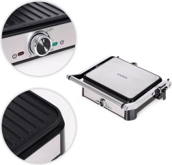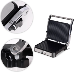 - Nastaviteľná výška veka pre tenké sendviče aj vysoké steaky