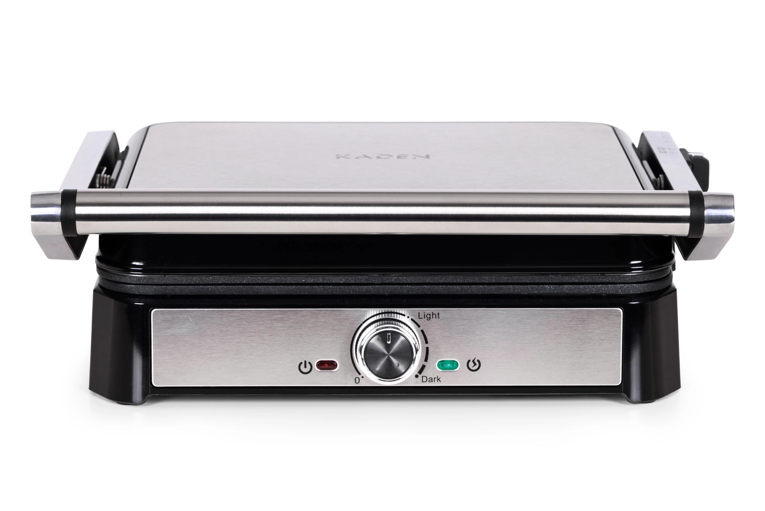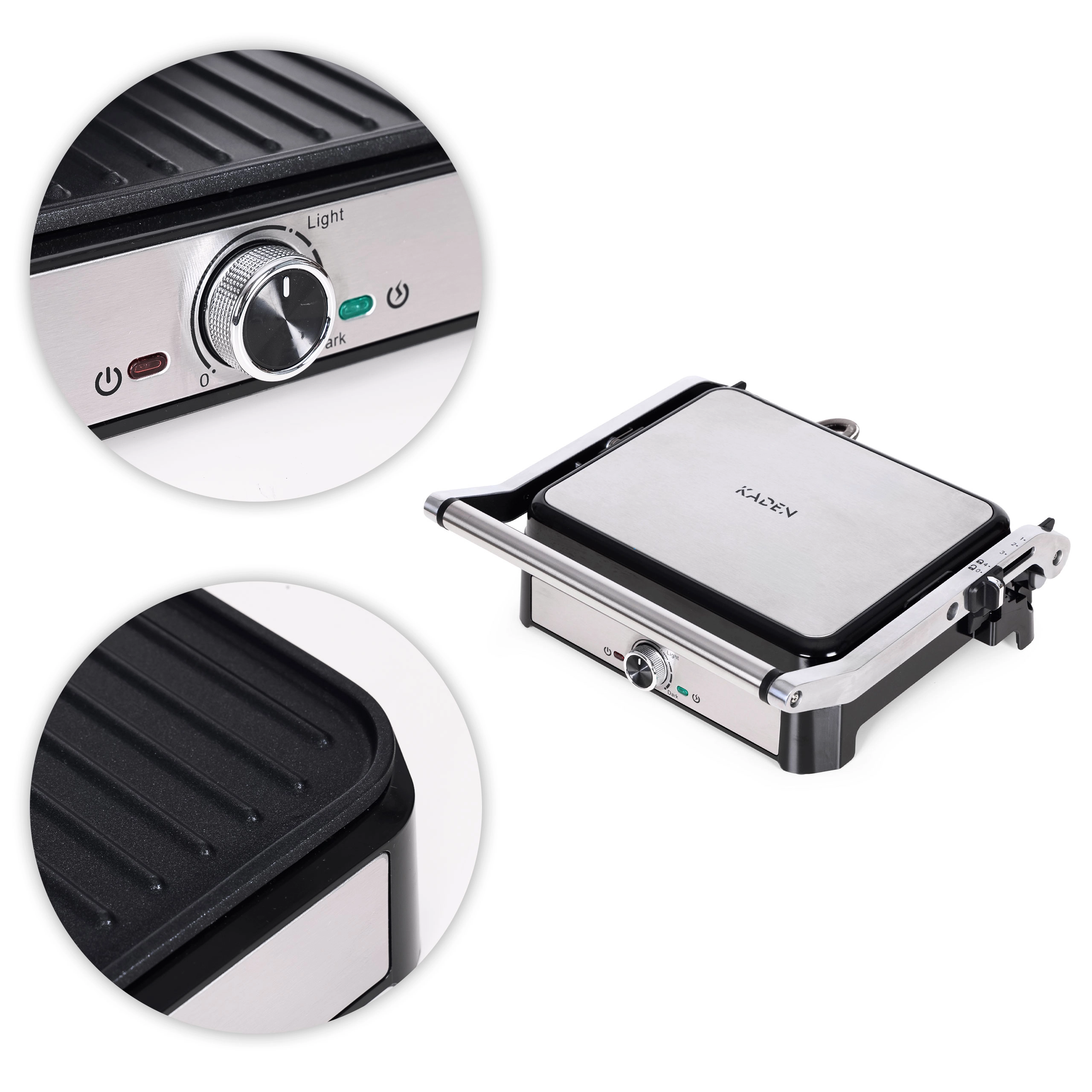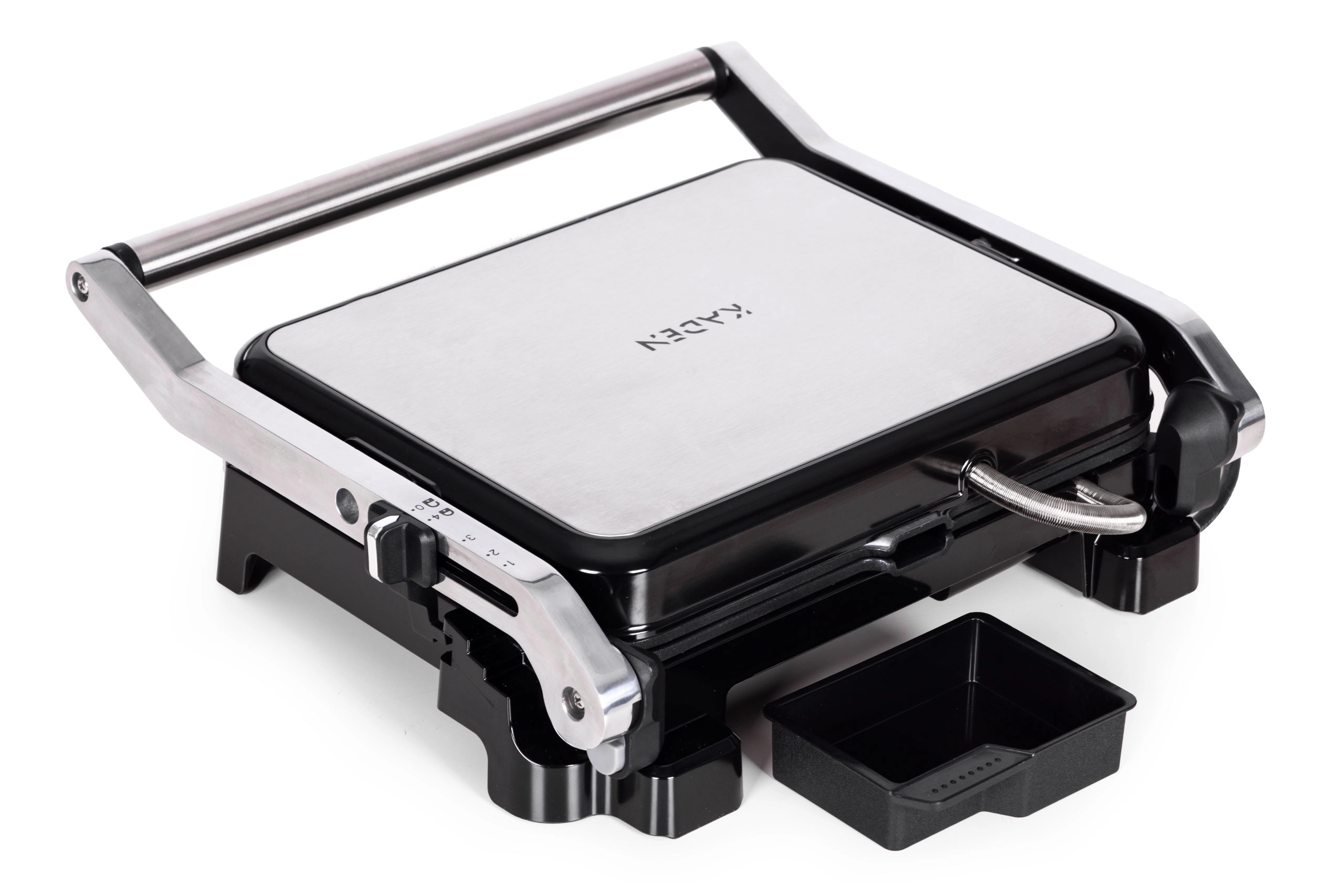 Užite si domáce grilovanie po celý rok. Kontaktný gril KADEN kombinuje rýchle nahrievanie, rovnomerný prenos tepla a praktické detaily, ktoré z neho robia ideálnu voľbu na panini, toasty, mäso aj zeleninu. Rebrované dosky zanechajú atraktívnu mriežkovú stopu a pomáhajú odvádzať prebytočný tuk do vyberateľnej misky.