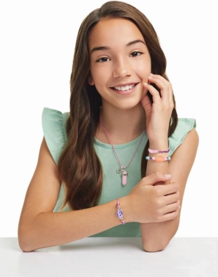 Rozvíjajte detskú tvorivosť so sadou, z ktorej ľahko vznikne náhrdelník a 3 náramky z korálikov v tvare krištáľu. V balení je všetko potrebné, nastaviteľné šnúrky aj jemné pastelové farby – ideálny darček pre deti od 8 rokov.