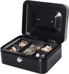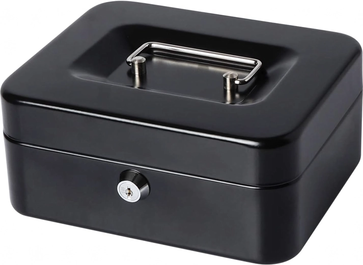 Kompaktná kovová pokladničná kazeta so zámkom na kľúčik je ideálna na bezpečné uloženie hotovosti, účteniek, mincí a bankoviek aj drobných dokumentov. Vďaka vyberateľnému organizéru s priehradkami ľahko roztriedite drobné, zatiaľ čo pevná kovová konštrukcia a praktické madlo zaistia pohodlné prenášanie a odolnosť pri každodennom používaní.