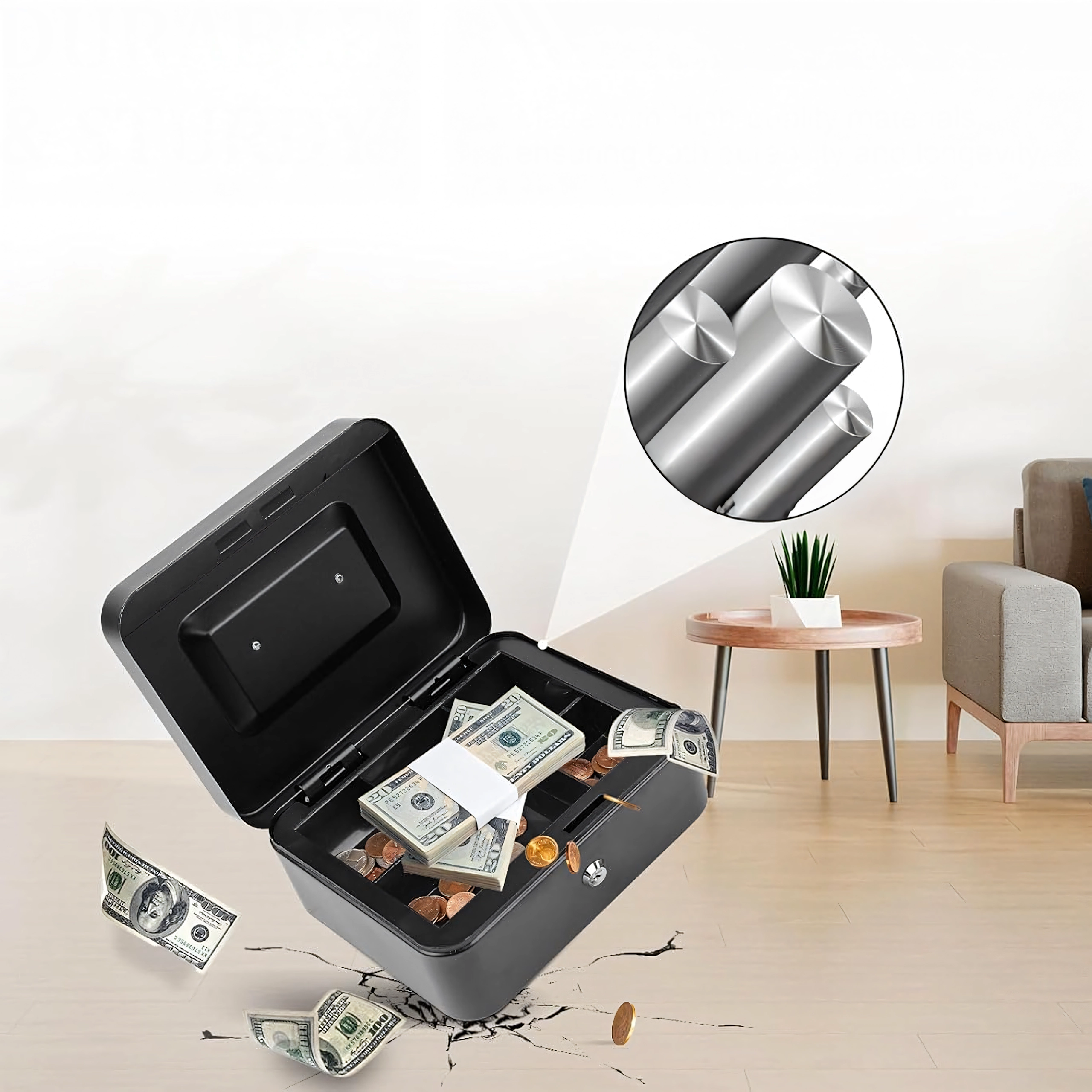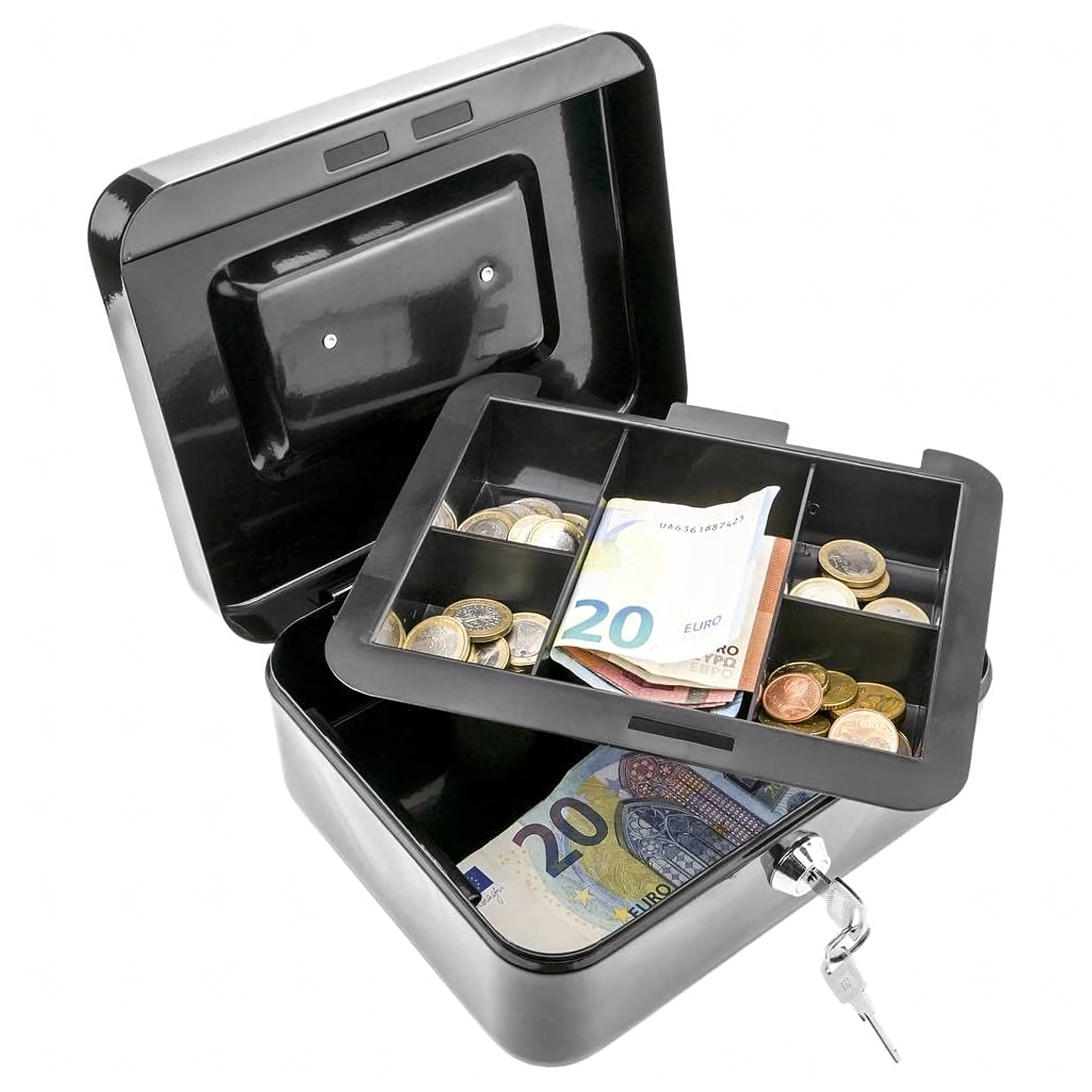 Táto robustná kovová kazeta na peniaze je spoľahlivým riešením pre domácnosť, kanceláriu aj malé prevádzky. Ponúka mechanické zabezpečenie na kľúč a prehľadné členenie vnútorného priestoru pre rýchlu prácu s hotovosťou. Kompaktné rozmery umožnia jednoduché uloženie do zásuvky či skrine a zároveň poskytujú dostatok priestoru pre mince, bankovky a drobné cennosti.
