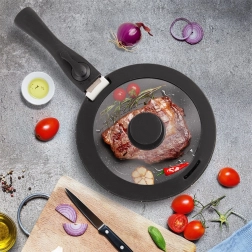 Vďaka pozdĺžnemu otvoru na odvod pary máte varenie pod kontrolou, zároveň ho možno využiť ako pomôcku pri zlievaní tekutín. Špeciálny profil s bočným výrezom je ideálny pre riad s odnímateľnou rukoväťou – pokrievka pohodlne sedí ako na panviciach, tak aj na hrncoch, a môžete ju používať aj v rúre do 220 °C.