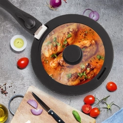 Sklenená pokrievka s pružným silikónovým okrajom je ideálnym doplnkom k panviciam a hrncom s priemerom 28 cm. Borosilikátové sklo zabezpečuje vysokú tepelnú odolnosť a dlhú životnosť, zatiaľ čo silikónový lem poskytuje pevné, nešmykľavé a šetrné dosadnutie na hranu riadu.