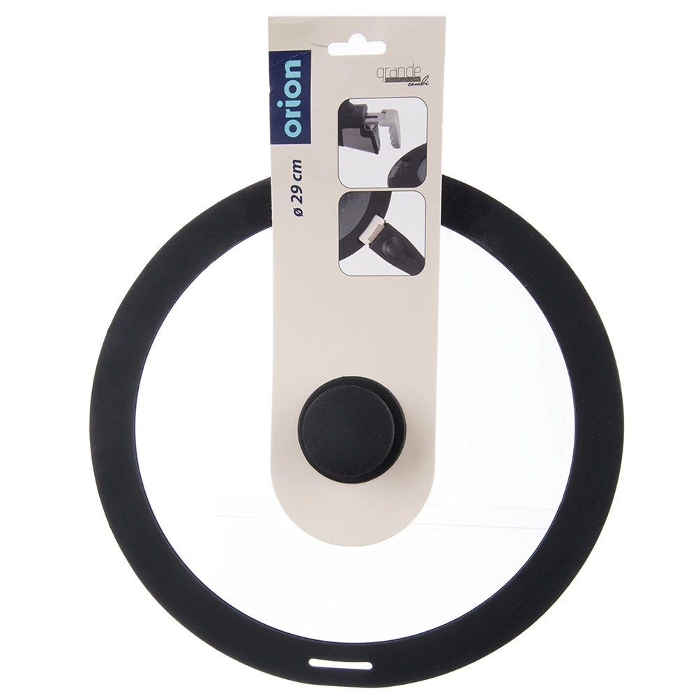 Univerzálna sklenená pokrievka s priemerom 29 cm so širokým silikónovým lemom pre riad 28 cm. Ponúka bezpečné a tesné priľnutie, odolné borosilikátové sklo, pozdĺžny otvor na únik pary a praktický výrez pre odnímateľnú rukoväť. Vhodná na varenie, dusenie aj pečenie až do 220 °C, je možné umývať v umývačke.