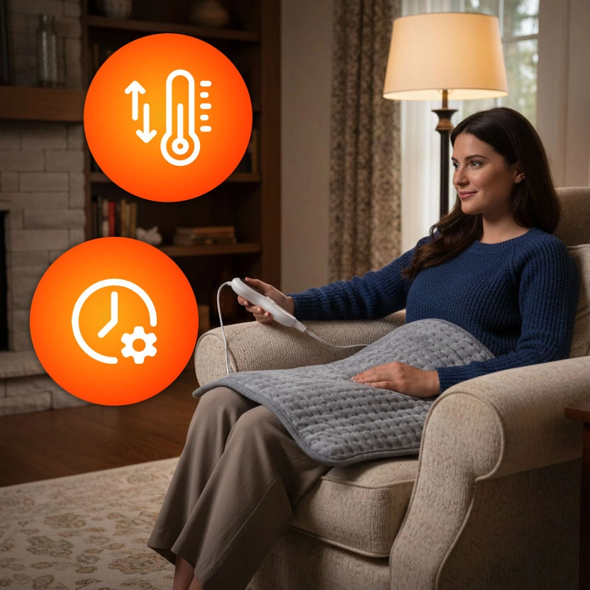 Vďaka 10 nastaviteľným úrovniam teploty (30–48 °C) si ľahko zvolíte jemné hrejivé teplo alebo intenzívnejší ohrev. Časovač s 3 voľbami (45/90/120 min) zaistí automatické vypnutie pre bezpečné použitie aj pri zdriemnutí.