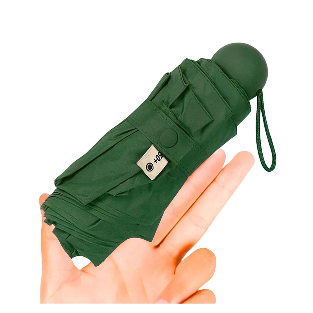 Ľahký a kompaktný dáždnik s priemerom 90 cm ponúka spoľahlivú ochranu pred dažďom aj slnkom. Vďaka UV filtru UPF 50+ chráni vašu pokožku pred škodlivým žiarením, zatiaľ čo odolný polyester a pevná konštrukcia zabezpečujú dlhú životnosť. Skladací dizajn s pútkom a ochranné puzdro robia z tohto tmavozeleného dáždnika ideálneho spoločníka do kabelky, batohu aj cestovnej tašky.