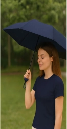 Kompaktný tmavomodrý dáždnik s priemerom 90 cm ponúka spoľahlivú ochranu pred dažďom aj slnkom. Vďaka povrchovej úprave UV UPF 50+ účinne blokuje škodlivé lúče, je ľahký, skladací a ľahko sa zmestí do kabelky či batohu. Pohodlná guľatá rukoväť a praktické puzdro uľahčujú každodenné nosenie.