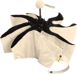 Štýlový béžový skladací dáždnik je ideálny spoločník do premenlivého počasia. Vďaka povrchovej úprave s UPF 50+ účinne blokuje škodlivé UV žiarenie, takže chráni nielen v daždi, ale aj pri ostrom slnku. Kompaktné rozmery a ľahká konštrukcia zaručujú, že ho ľahko uložíte do kabelky, batohu či vrecka väčšej bundy.