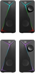 Užite si vyvážený stereo zvuk v elegantnom, kompaktnom tele. Tieto stolové reproduktory 2.0 sú skvelé na každodenné počúvanie hudby, hranie hier aj sledovanie filmov. Výkon 6 W sa postará o dostatok hlasitosti v menšej miestnosti, zatiaľ čo moderný dizajn s RGB LED podsvietením podčiarkne vzhľad vášho stola.