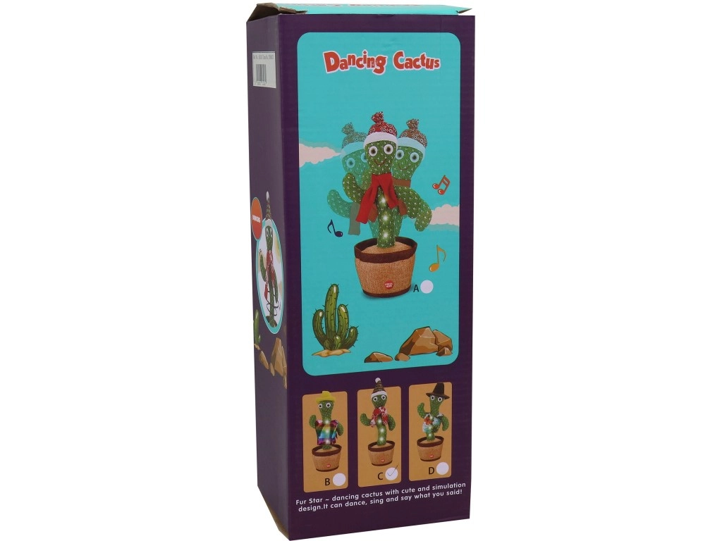 Tento veselý kaktus je ideálny spoločník na chvíle zábavy. Po zapnutí sa roztancuje, rozsvieti a dokáže opakovať všetko, čo počuje. Vďaka jednoduchému ovládaniu je vhodný pre deti od 3 rokov a skvele sa hodí ako originálny darček.
