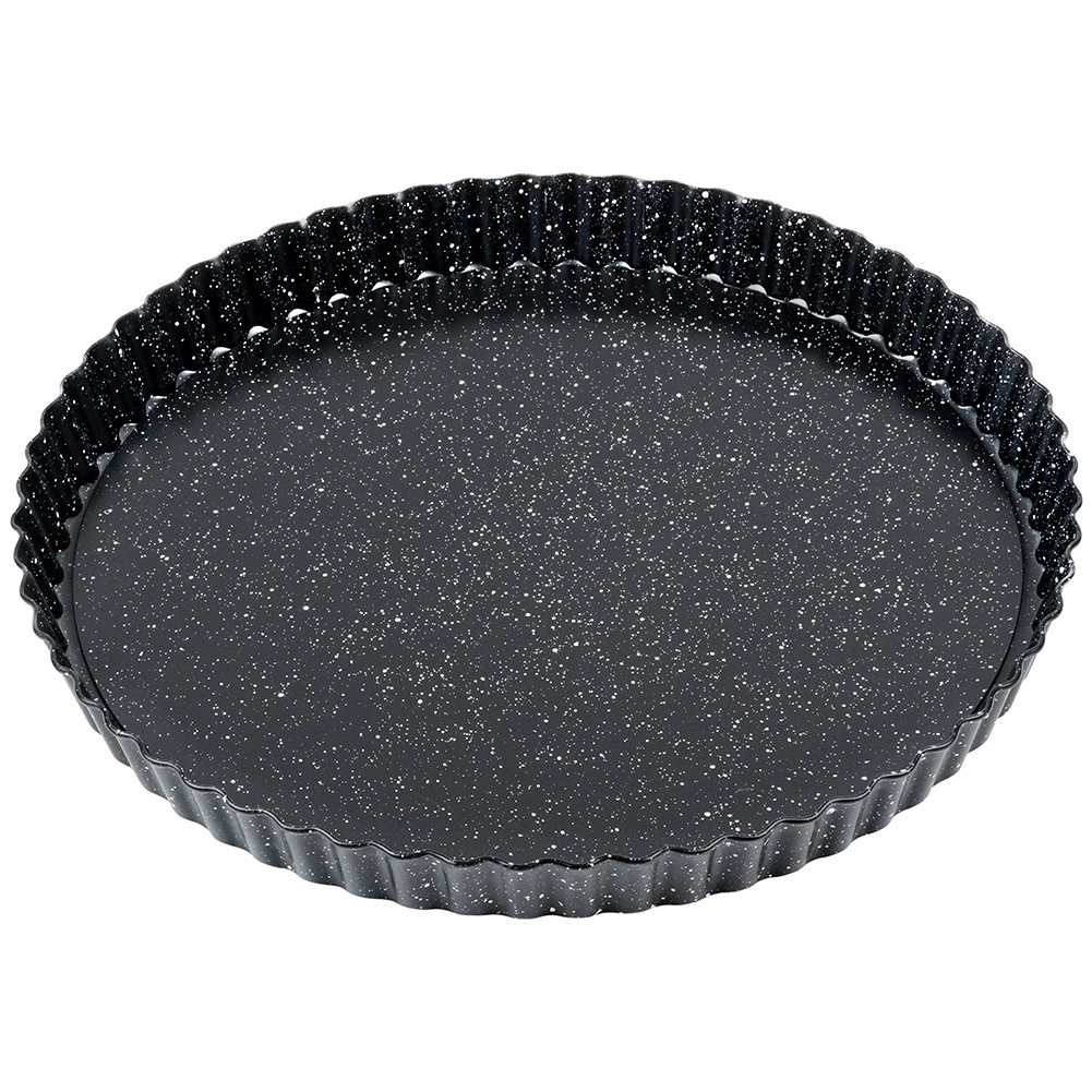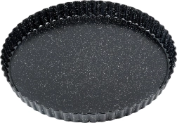 Praktická okrúhla forma na tart s vyberateľným dnom pre jednoduché vybratie bez poškodenia okrajov. Odolná uhlíková oceľ s granitovým nepriľnavým povrchom zabezpečuje rovnomerné pečenie a pohodlné čistenie. Vlnité okraje vytvárajú dekoratívny korpus, ideálne na sladké aj slané tartaletky, quiche a zapekané jedlá. Rozmery 28 × 3 cm, do rúry až do 230 °C.