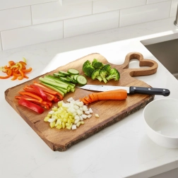 Dekoratívny a funkčný srdiečkový úchop zaručí pohodlné prenášanie a jednoduché zavesenie dosky po použití.
