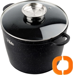 Robustný hrniec z hliníkového odliatku s nepriľnavou granitovou povrchovou úpravou umožní variť s minimom tuku, ľahko sa čistí a rovnomerne rozvádza teplo. Sklenená pokrievka s nerezovým úchopom a integrovaným dávkovačom tekutých surovín umožňuje dolievať vodu, víno či vývar bez zdvíhania pokrievky.