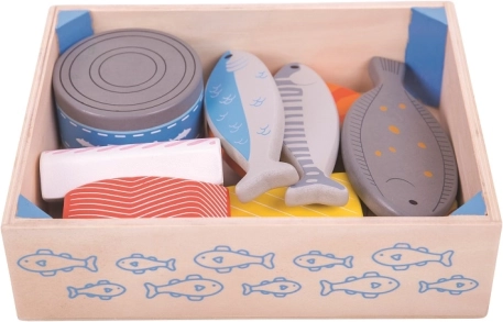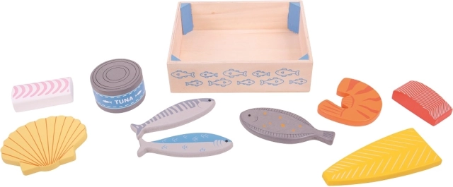 Táto drevená prepravka je plná čerstvých a zdravých rýb, ako je losos, konzerva tuniaka a krevety. Skvelý doplnok do drevenej kuchynky pre všetkých malých kuchárov. Bigjigs Toys drevené jedlo podporuje pútavé učenie o pôvode a príprave jedla, zlepšuje detskú motoriku a zároveň deti baví.