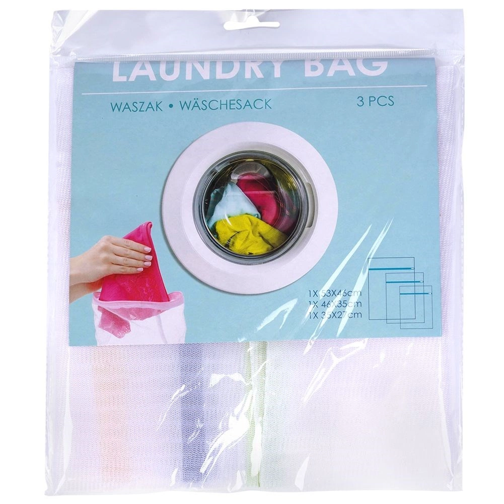 Praktická sada troch vreciek na pranie v rôznych veľkostiach chráni vaše jemné a spodné prádlo pred poškodením a deformáciou. Vďaka jemnej sieťovine je zaistený voľný prietok vody a pracieho prostriedku, zatiaľ čo zipsové uzatváranie bezpečne udrží obsah vo vnútri. Odolné polyesterové prevedenie rýchlo schne a vydrží dlhé roky. Ideálne pre jemné tkaniny, svetre, spodné prádlo či ponožky.