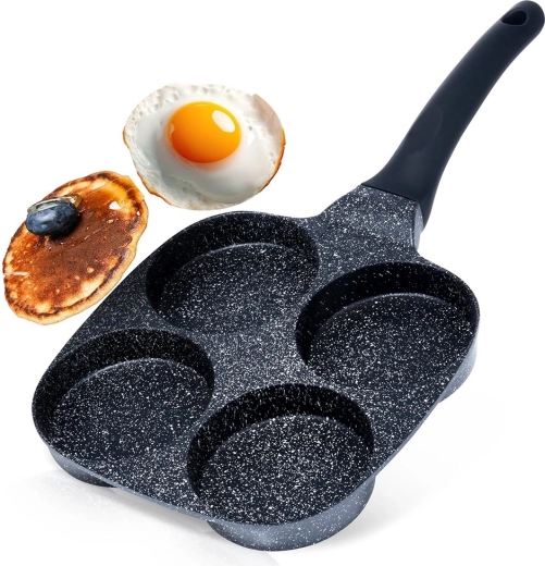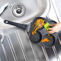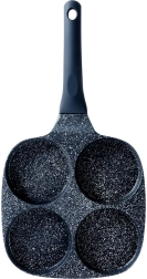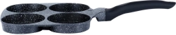 Praktická granitová panvica so štyrmi okrúhlymi formami s priemerom 8,5 cm na dokonale tvarované vajcia a lievance. Vďaka nepriľnavej granitovej povrchovej úprave pripravíte jedlá s minimom tuku, rovnomerný rozvod tepla zaručí rovnomerné vyprážanie a ergonomická rukoväť zaistí bezpečné a pohodlné používanie. Vhodná na všetky typy sporákov vrátane indukcie a ľahko sa čistí.