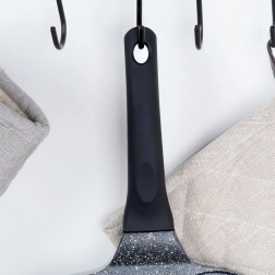 Masívne hliníkové telo zabezpečuje rýchly nábeh tepla a jeho rovnomernú distribúciu po celej ploche, čo šetrí čas aj energiu. Ergonomická, protišmyková rukoväť dobre padne do ruky a otvor na konci umožňuje praktické zavesenie.