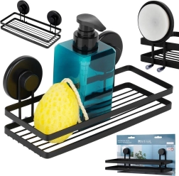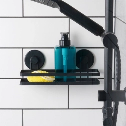 Praktická sprchová polička z odolného kovu s matným čiernym povrchom a silnými prísavkami na montáž bez vŕtania. Ponúka stabilné uchytenie, rýchly odvod vody a nosnosť až 3,5 kg, takže udrží šampóny, gély aj doplnky vždy po ruke.
