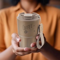 Hrnček dobre padne do ruky aj do držiakov v aute. Odnímateľné pútko uľahčuje nosenie na cestách.