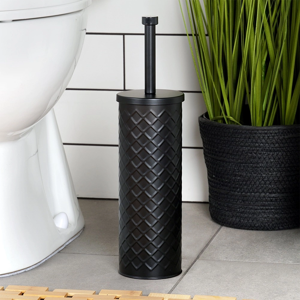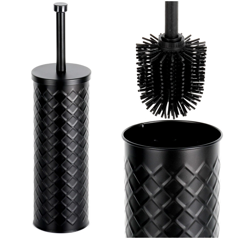 Matné čierne prevedenie s elegantným diamantovým reliéfom dodá kúpeľni moderný vzhľad. Kovová konštrukcia je pevná a stabilná, rukoväť pohodlne padne do ruky. Vymeniteľná skrutkovacia čistiaca hlavica predlžuje životnosť celého setu.