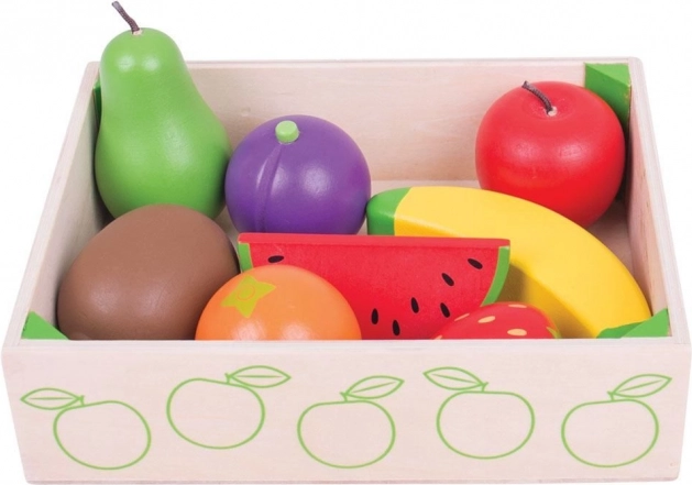 V tejto krabičke nájdete rôznorodé drevené ovocie, ako sú banány, jablká, jahody alebo hrušky. Pre deti je to skvelá hračka, ktorá ich nielen baví, ale zároveň ich aj vzdeláva o význame zdravej a vyváženej stravy. Hra je navrhnutá pre rozvoj jemnej motoriky a pri hre sa deti tiež učia, odkiaľ pochádza ich jedlo a ako sa pripravuje.