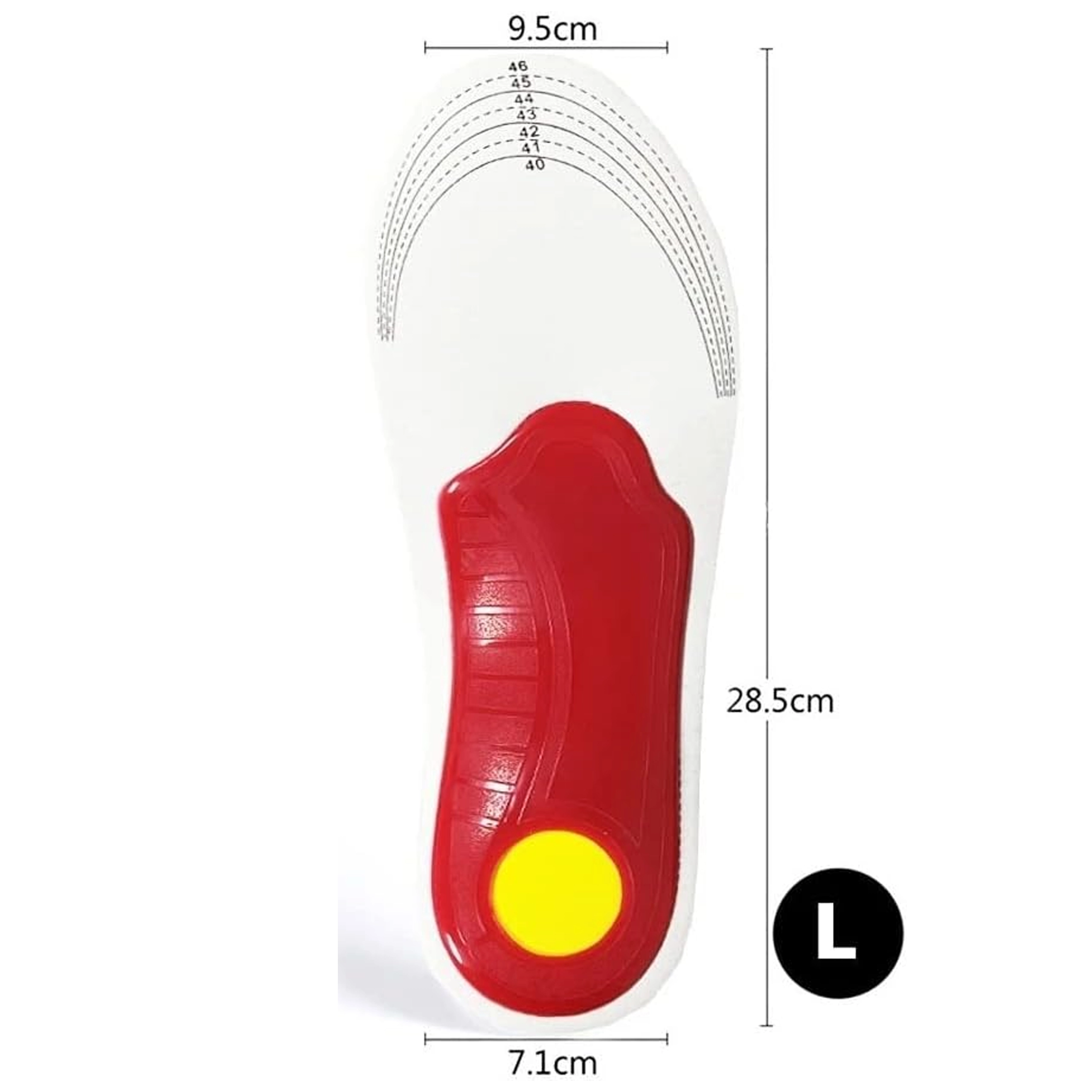 Univerzálne ortopedické vložky z materiálu EVA poskytujú vysokú oporu pozdĺžnej aj priečnej klenby, pomáhajú pri plochých nohách a uľavujú od bolesti predonožia. Vďaka precízne tvarovanej podpore klenby a metatarzálnej pelote zlepšujú postavenie chodidla, tlmia nárazy a zvyšujú každodenný komfort chôdze.