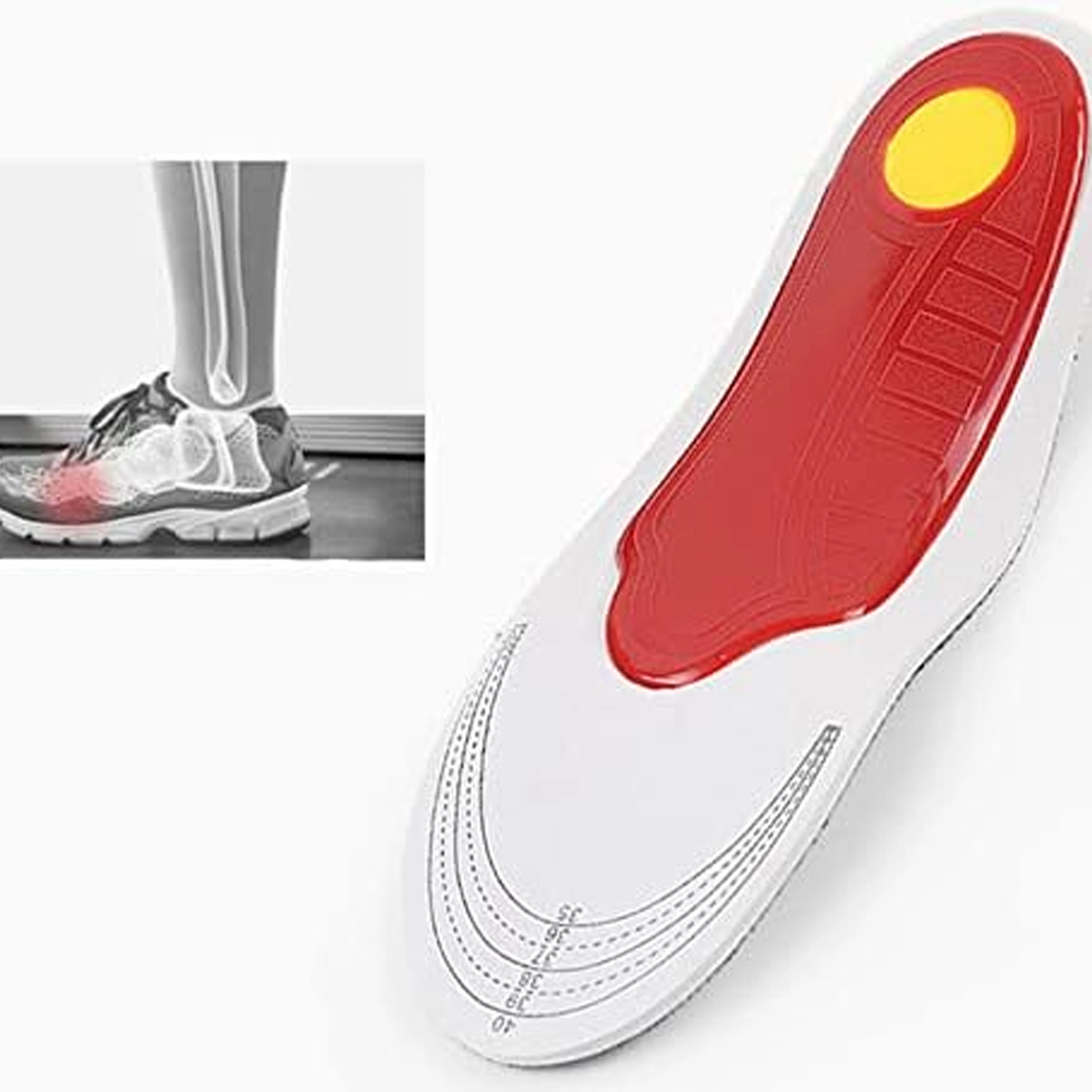 Ľahké ortopedické vložky z materiálu EVA prinášajú účinnú podporu klenby, tlmenie nárazov a úľavu od bolesti predonožia. Vďaka metatarzálnej pelote pomáhajú udržať správne postavenie kostí chodidla pri priečnom aj pozdĺžnom plochonoží, zlepšujú stabilitu a komfort pri chôdzi aj celodennom státí.