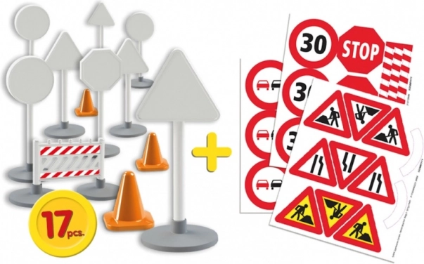 Kompletný výber základných značiek (STOP, obmedzenie rýchlosti, práce na ceste a i.) pre zábavné učenie pravidiel cestnej premávky.