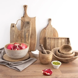 Exotické drevo mangovníka je pevné, odolné voči vlhkosti a ľahko sa udržiava. Každá miska má jedinečnú kresbu a teplý odtieň.