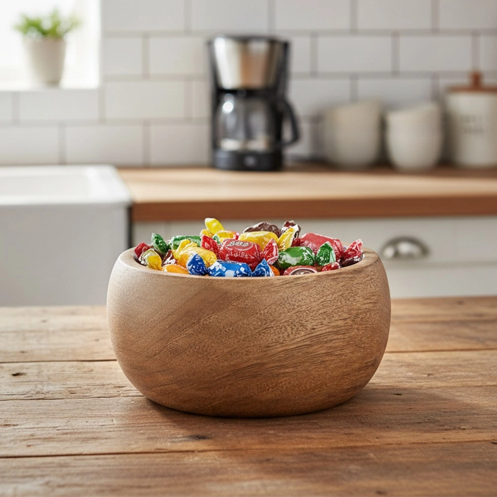 Táto miska z exotického mangového dreva zaujme prírodnou kresbou a pevnou úpravou. Je ideálna na každodenné použitie – od orieškov a sušeného ovocia až po šaláty či prílohy. Vďaka odolnosti dreva voči vlhkosti sa skvele hodí aj na servírovanie teplých aj studených pokrmov.