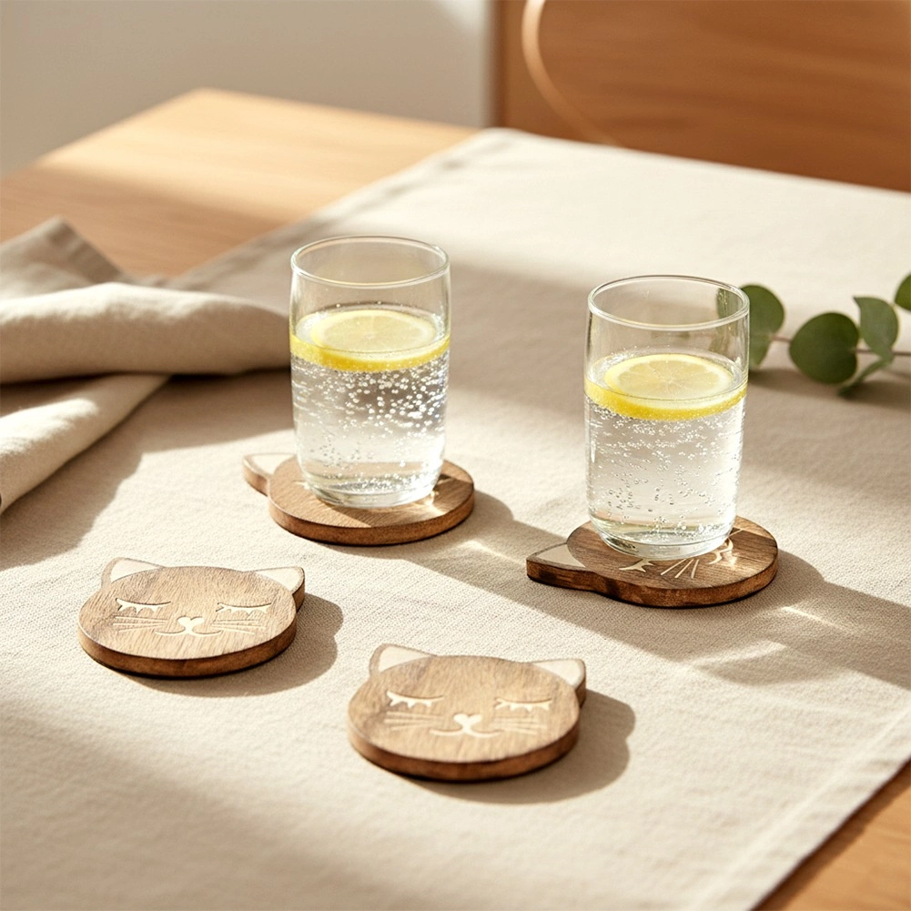 Objavte praktické a dekoratívne podtácky, ktoré spájajú funkčnosť s osobitým štýlom. Vyrobené z prírodného mangového dreva a zdobené jemne vyrytým mačacím motívom spoľahlivo ochránia povrchy pred horúcimi aj studenými nápojmi, krúžkami od pohárov aj poškrabaním.