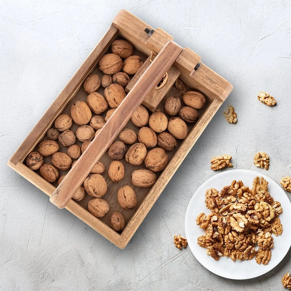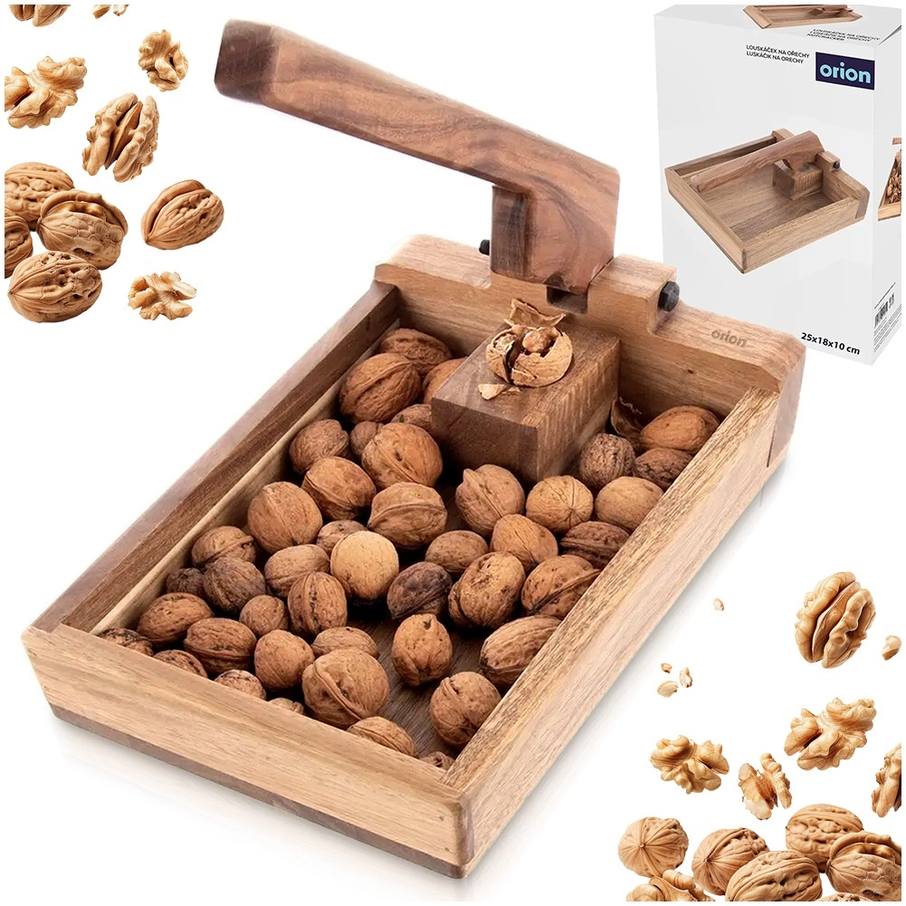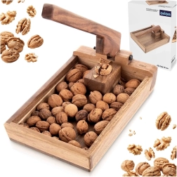 Tento drevený luskáčik s praktickým zásobníkom udržiava škrupiny aj jadrá pokope, takže lúskanie je čisté a prehľadné. Pákový mechanizmus poskytuje dostatočnú silu aj pri menšom tlaku, čo zaisťuje rýchle a bezpečné rozlúsknutie orecha.