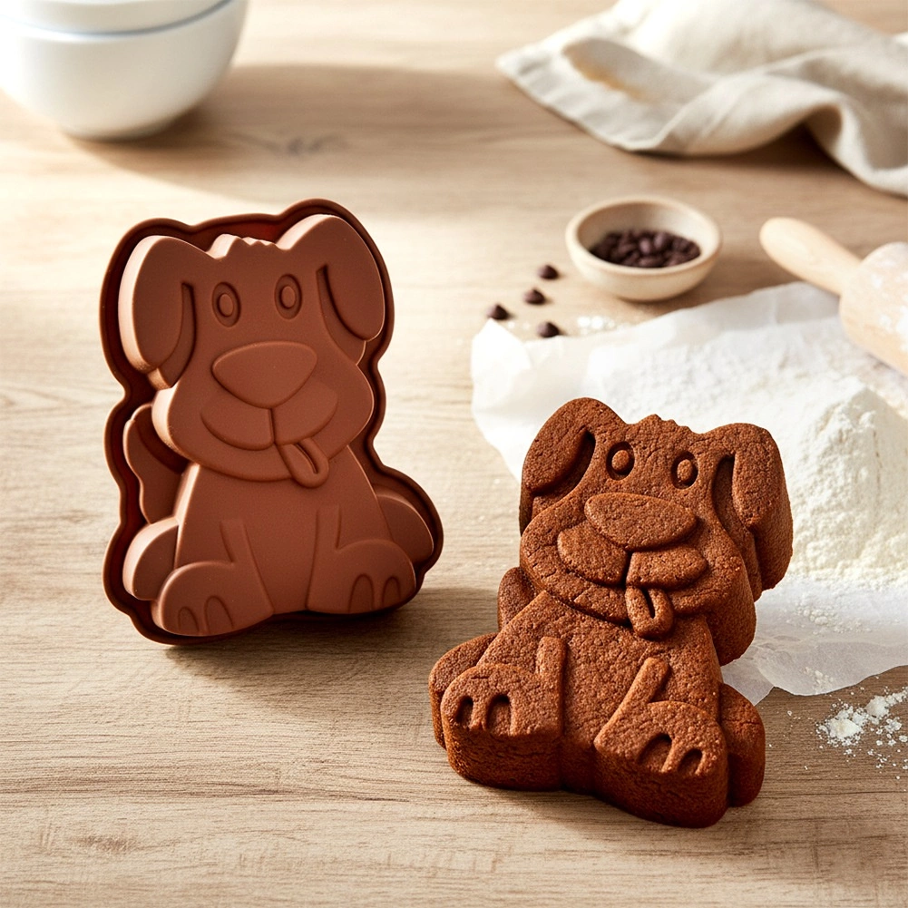 Roztomilá silikónová forma v tvare psa na jednoduché pečenie aj prípravu studených dezertov. Vďaka pružnému materiálu sa dezerty nepripália, ľahko sa vyklápajú a detaily labiek aj ňufáka vytvoria efektný vzhľad každého tortu. Odolnosť od -40 °C do +220 °C, vhodná do rúry, mikrovlnky, mrazničky aj umývačky.