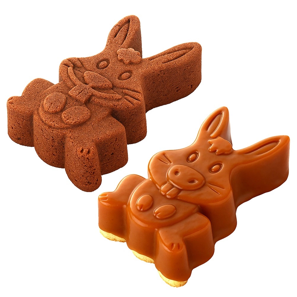 Roztomilá silikónová forma na pečenie v tvare zajaca premení vaše dezerty na atraktívne 3D výtvory. Vďaka flexibilnému materiálu je nepriľnavá, ľahko vyklopiteľná a odolná voči teplotám od -40 °C do +220 °C. Ideálna na bábovkové a piškótové cestá, liate a kysnuté cestá aj studené dezerty.